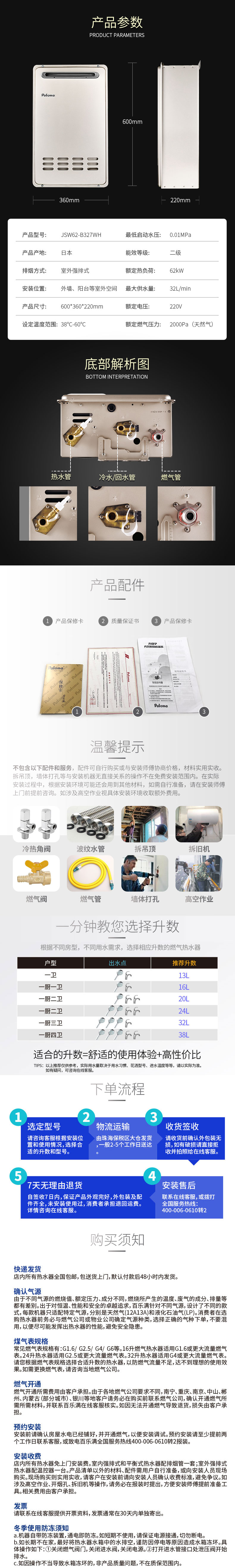 百乐满JSW62-B327WH 32升室外中央燃气热水器恒温日本进口