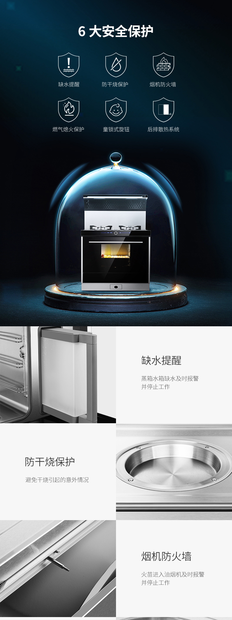 火星人 E5G/Z集成灶蒸箱下排式侧吸油烟机燃气灶套装