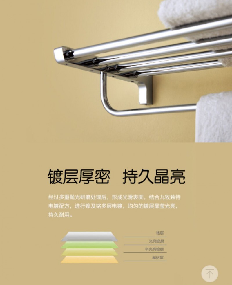 JOMOO九牧60CM太空铬浴巾架934812 593×206×86mm 锌合金底座 铜合金固定座 不锈钢管 表面镀铬