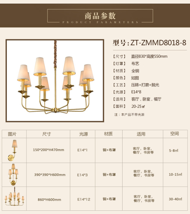 东方灯饰ZT客厅吊灯卧室餐厅美式轻奢全铜灯具ZMMB8018