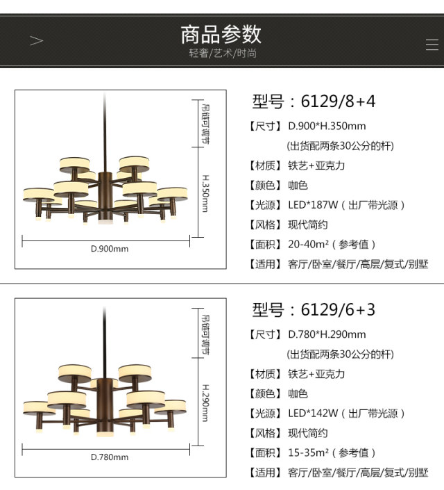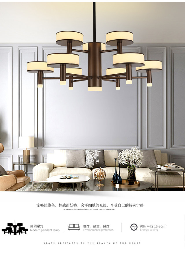 东方灯饰ZT后现代简约客厅吊灯个性北欧餐厅书房卧室led吸顶灯6129咖色