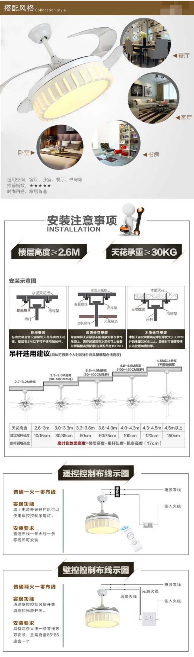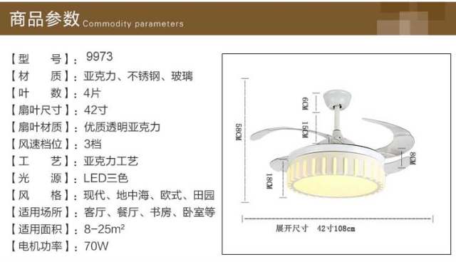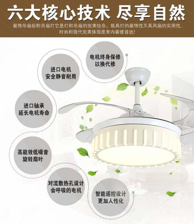 东方灯饰 ZT隐形风扇灯欧式餐厅简约电扇灯客厅灯吊扇9973