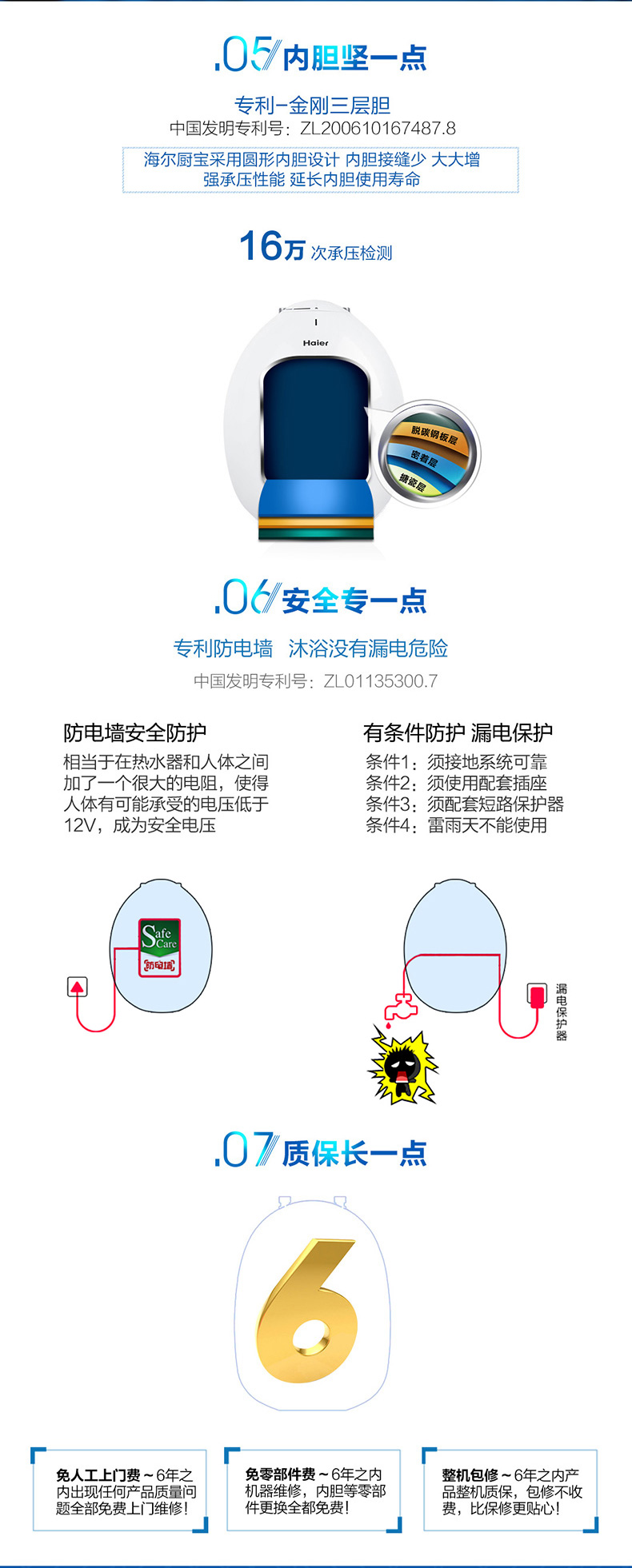 海尔 ES6.6U(W) 小型厨宝电热水器家用储水式即热厨房