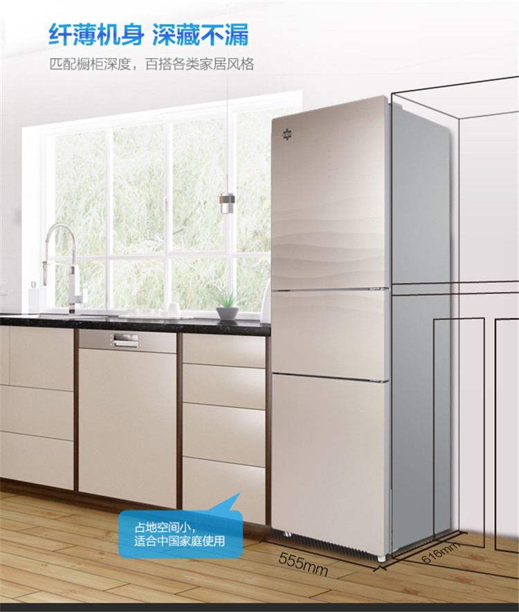 晶弘 (KINGHOME) 冰箱 231升三门 变温三区无霜BCD-231WETG