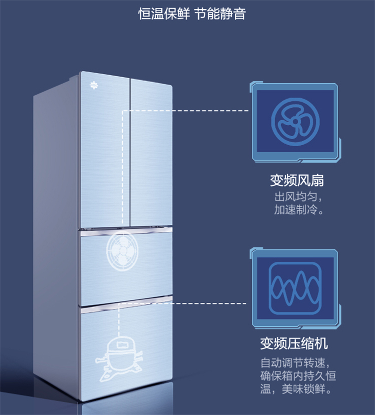 晶弘 (KINGHOME) 冰箱 302升法式对开 风冷无霜BCD-302WPQG