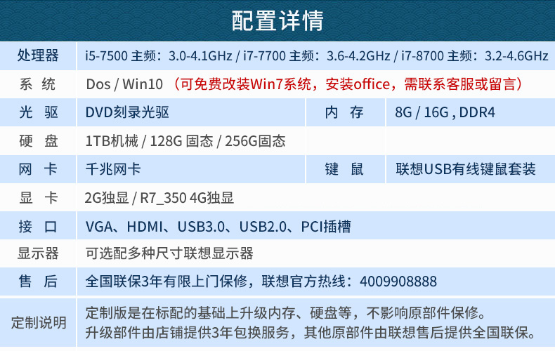 商品名称:联想(Lenovo)M920T i5/i7 高端商用台式机
