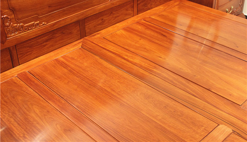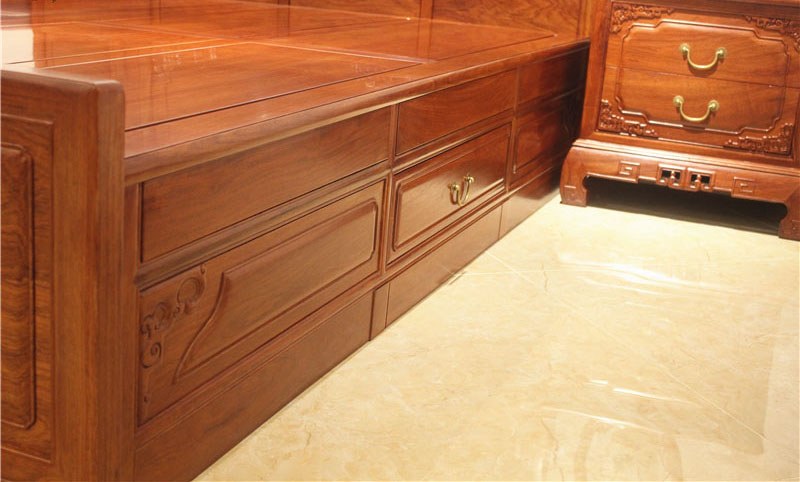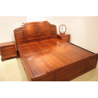 整套红木大床实拍图片:包括大床+两个床头柜。