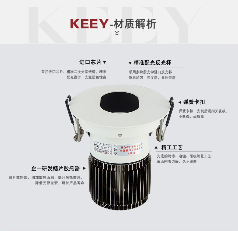 企一照明LED射灯9W酒店天花灯COB客厅吊顶嵌入式灯具现代卧室牛眼灯QY-TH618W 9W黄光 / 圆口TH618W