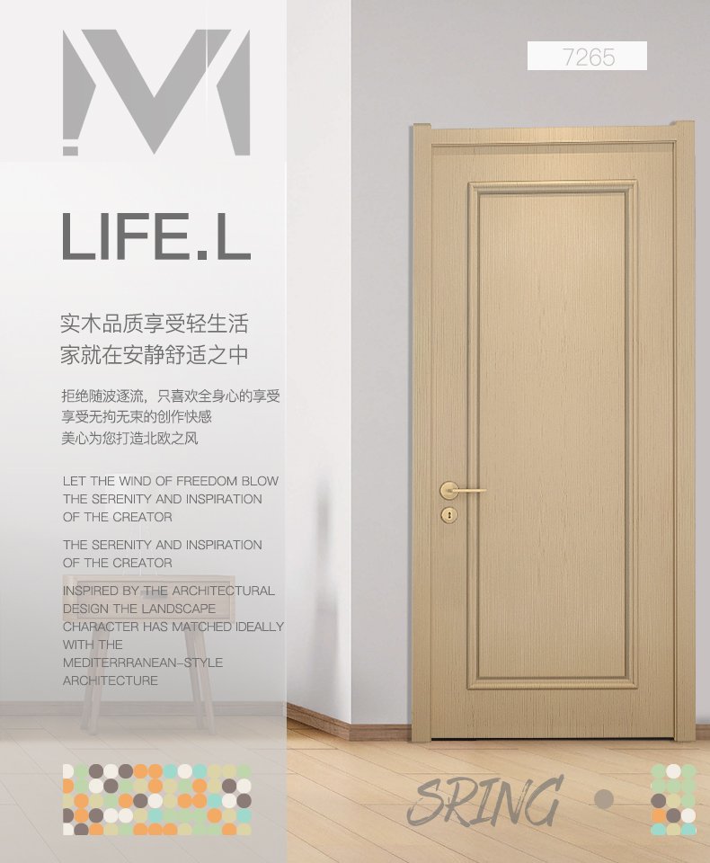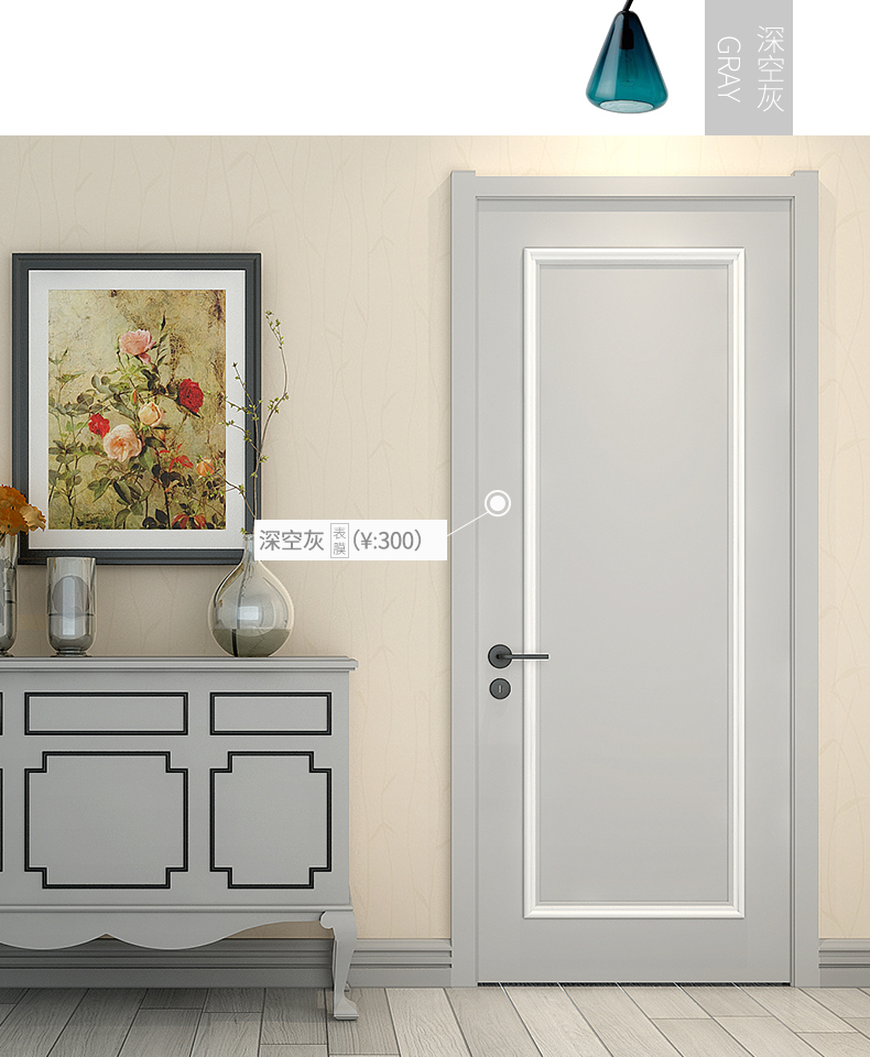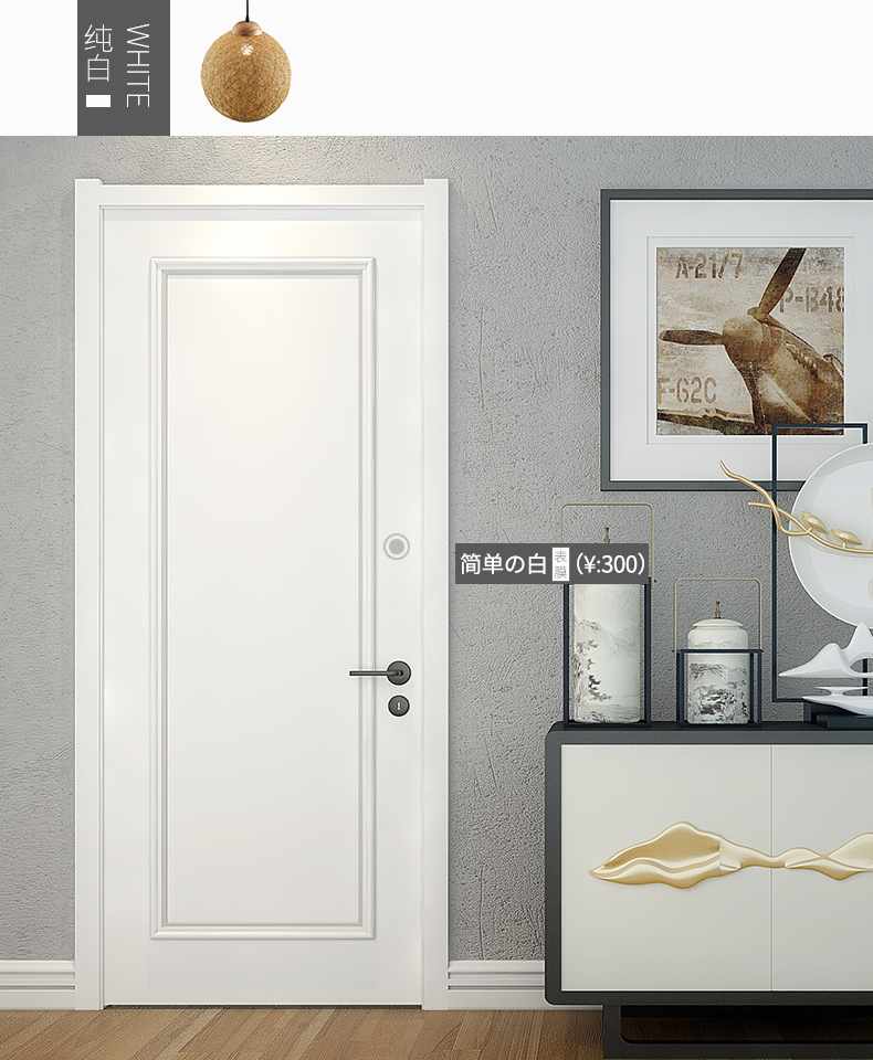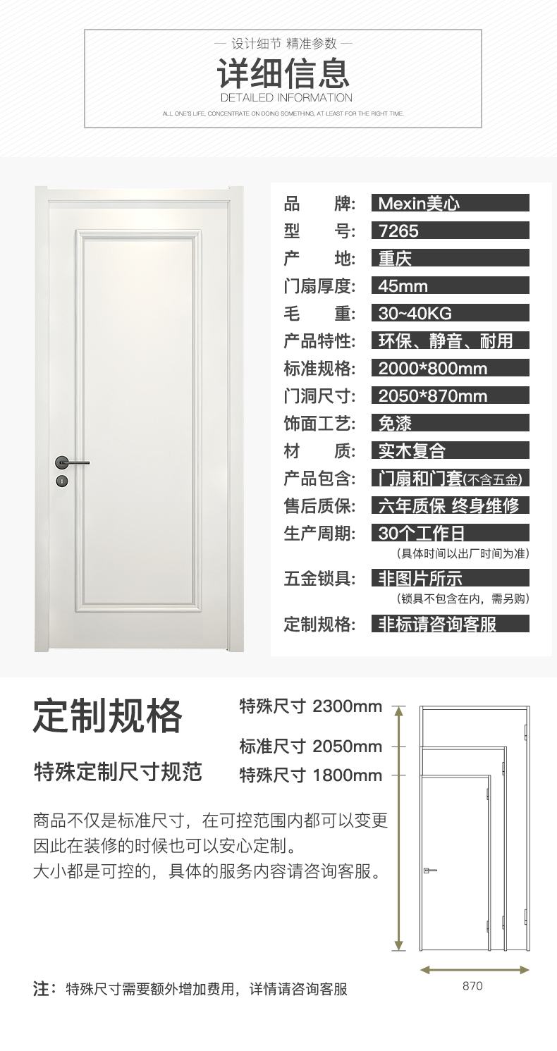 美心木门室内门卧室门套装门实木复合门简欧风格免漆门7265