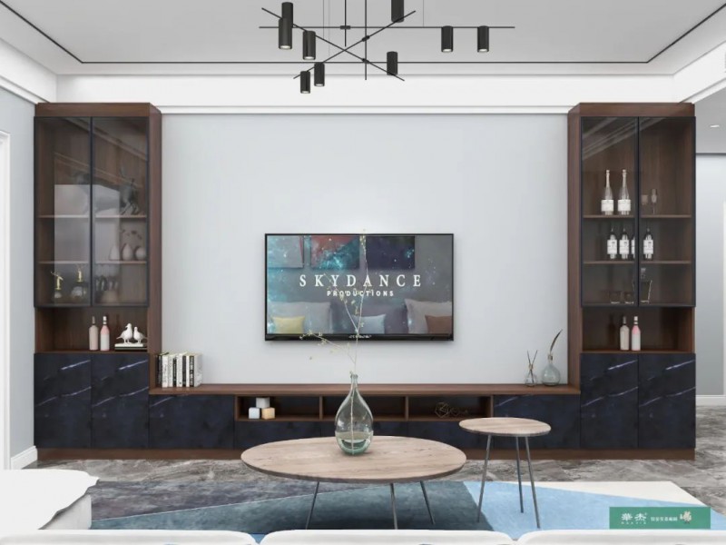 电视柜墙占据了一面墙,将整面墙的垂直空间利用到了极限,超强的储物空间,可以把零食、杂物、玩具等等零散小物件统统收进柜子,保持客厅的整齐清爽,从此告别凌乱和拥挤。