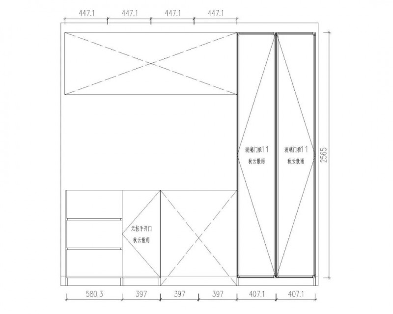 玻璃门的通顶酒柜搭配上半开放的储物柜,让墙壁看上去更加的自然和谐,简洁明净。