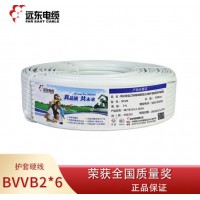商品名称:远东电线电缆 BVVB 2*6平方国标家装进户大功率电器用2芯电线铜芯外护硬线 明装敷设 白色 100米