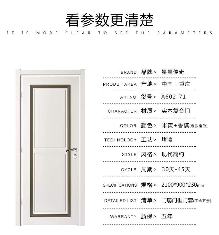 星星传奇木门烤漆简约卧室套装门厨房卫生间房间实木复合门A60271