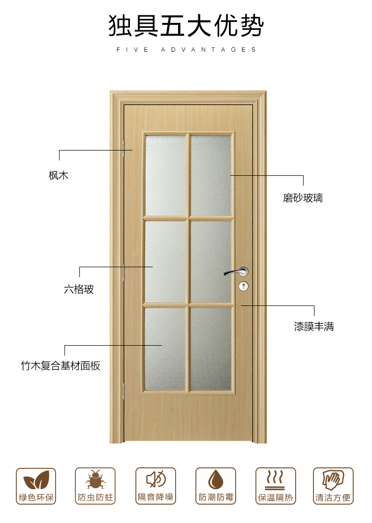 星星传奇木门烤漆简约卧室套装门厨房卫生间房间实木复合门B12727