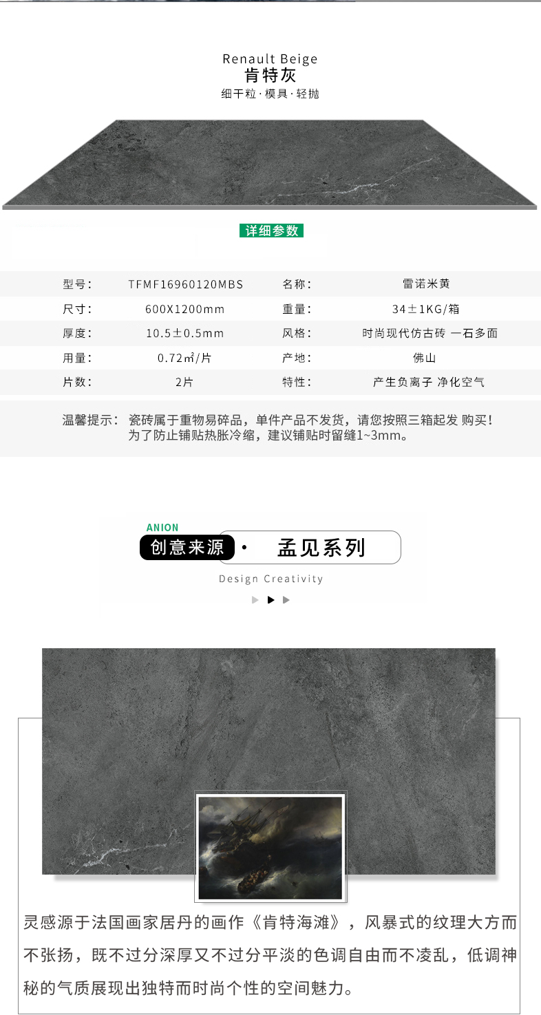 特地负离子瓷砖 孟见肯特灰
