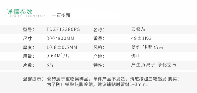 特地·负离子瓷砖 风尚系列云雾灰 祛甲醛客厅卧室内墙地板瓷砖