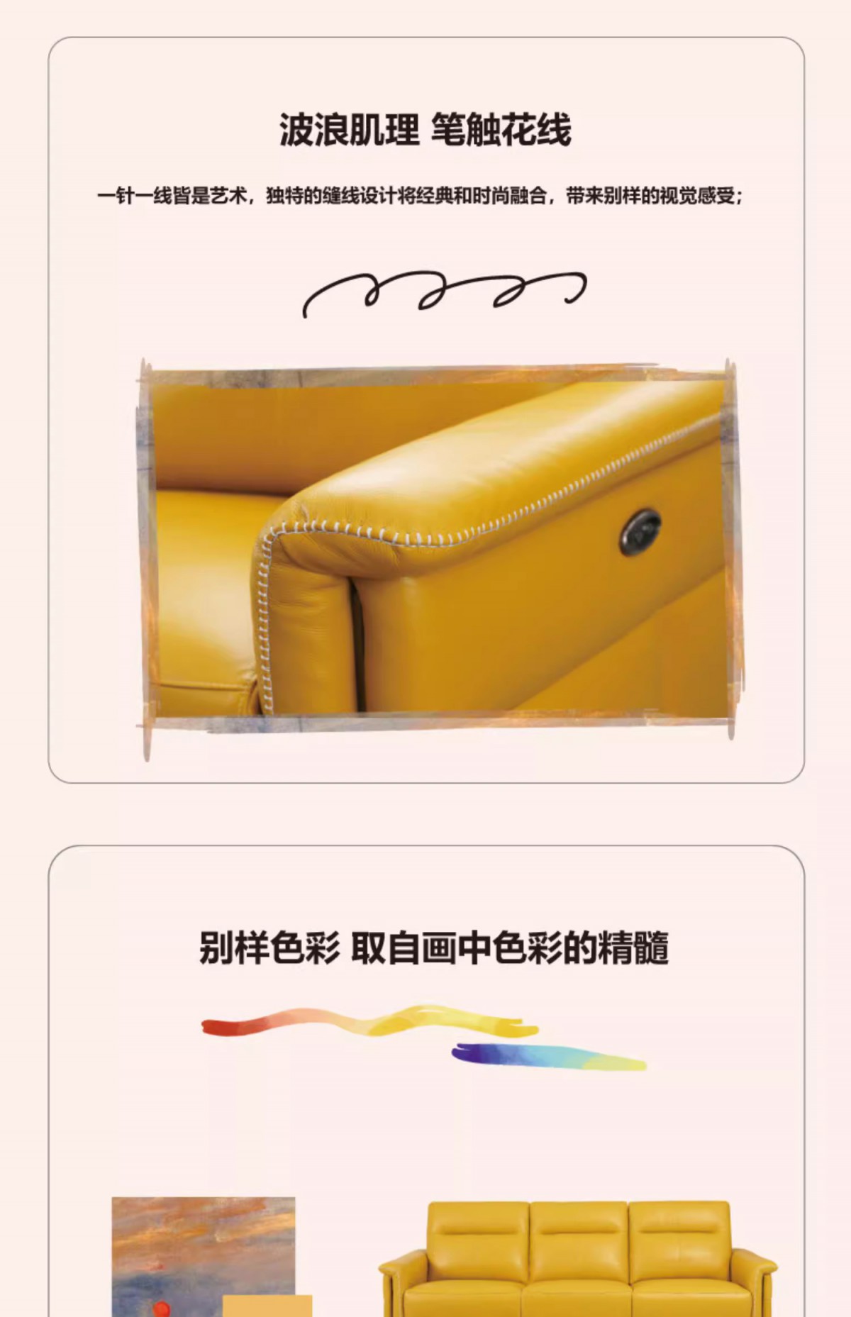 Domicil全皮沙发三人位轻奢简约家具印象日出DM-B5088