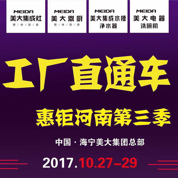 美大集成灶,工厂直通车第三季开始了,10.27--29日与你相约浙江,活动全程免费!观钱塘江大潮,览西湖美景,品江南美食,游5A级皮革城,工厂秋季特惠,见证美大“实力”,必须去看看!