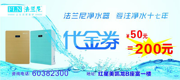 法兰尼净水器盛大开业——新店新惊喜,好礼送不停!