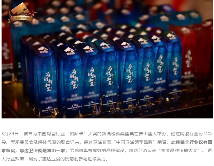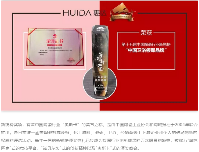 锐意进取!惠达卫浴斩获新锐榜重磅大奖“中国卫浴领军品牌”等多项殊荣