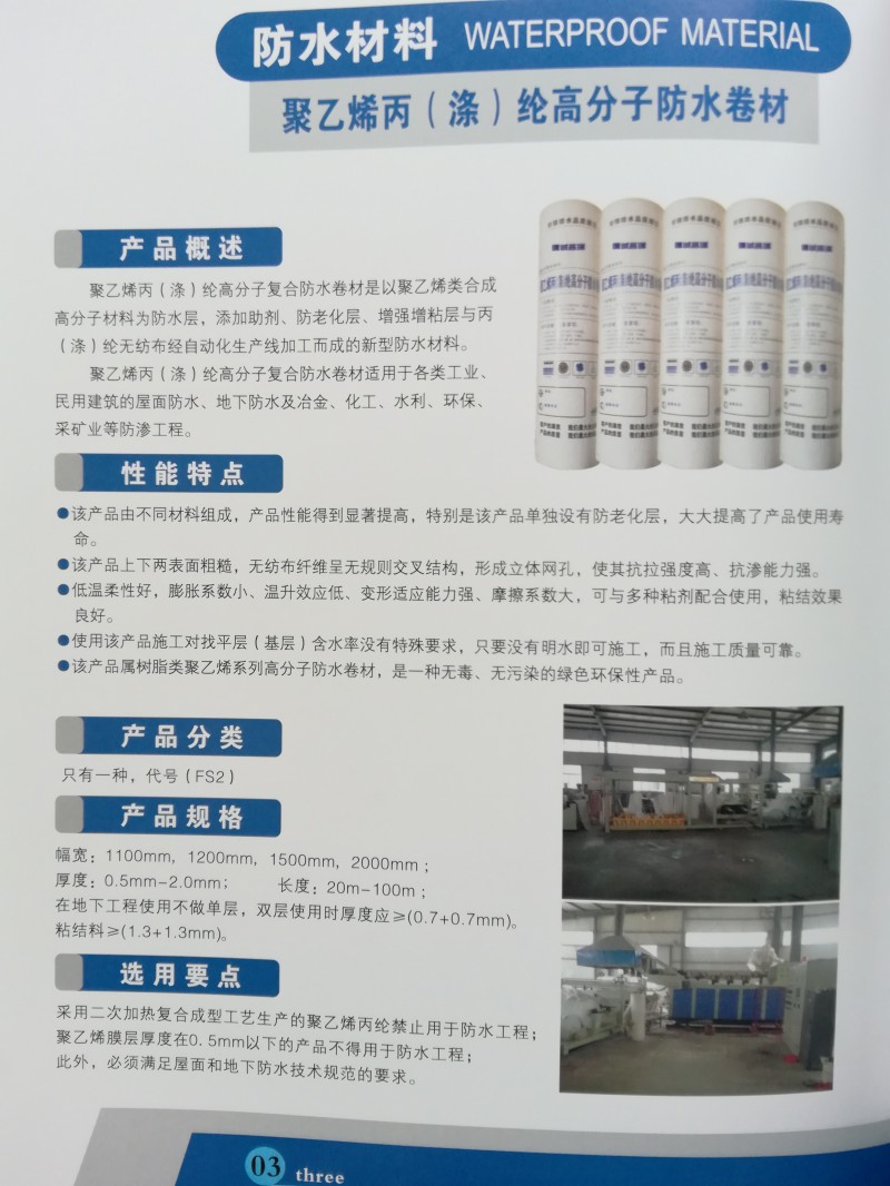 无忧防水材料 聚乙烯丙纶高分子防水卷材