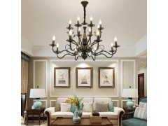 东方灯饰ZT美式乡村地中海吊灯田园风格灯具卧室灯简欧吊灯蜡烛餐厅灯1817黑色