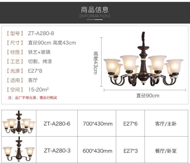 东方灯饰 ZT美式铁艺吊灯A280