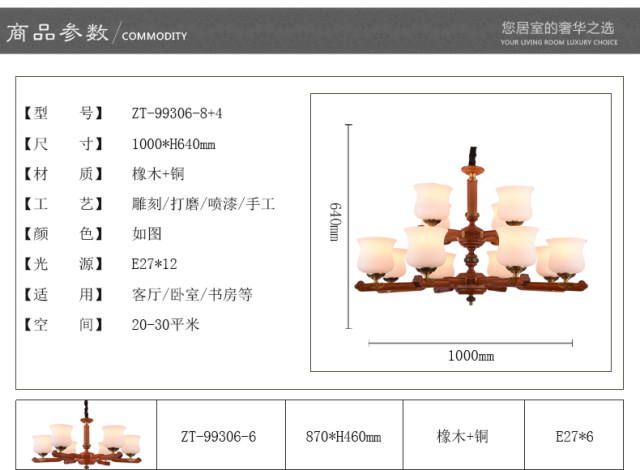 现代灯饰 ZT中国风实木吊灯99306