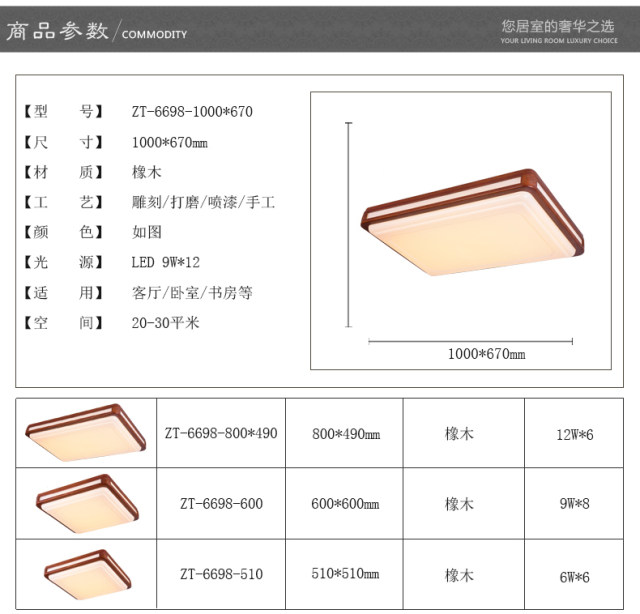 现代灯饰 ZT中式客厅吸顶灯LED书房卧室灯6698