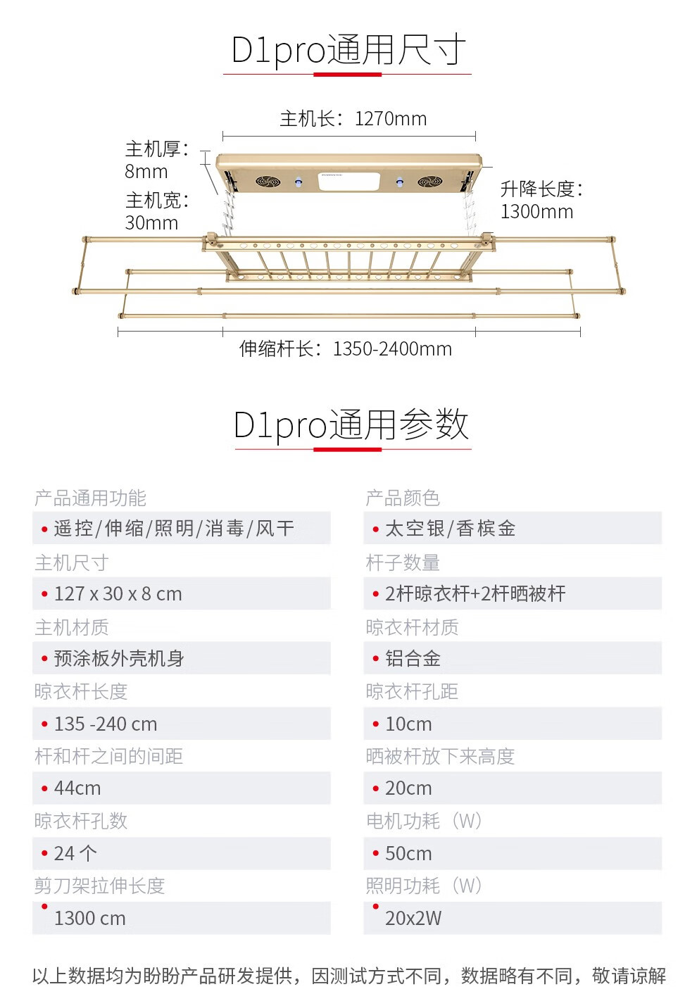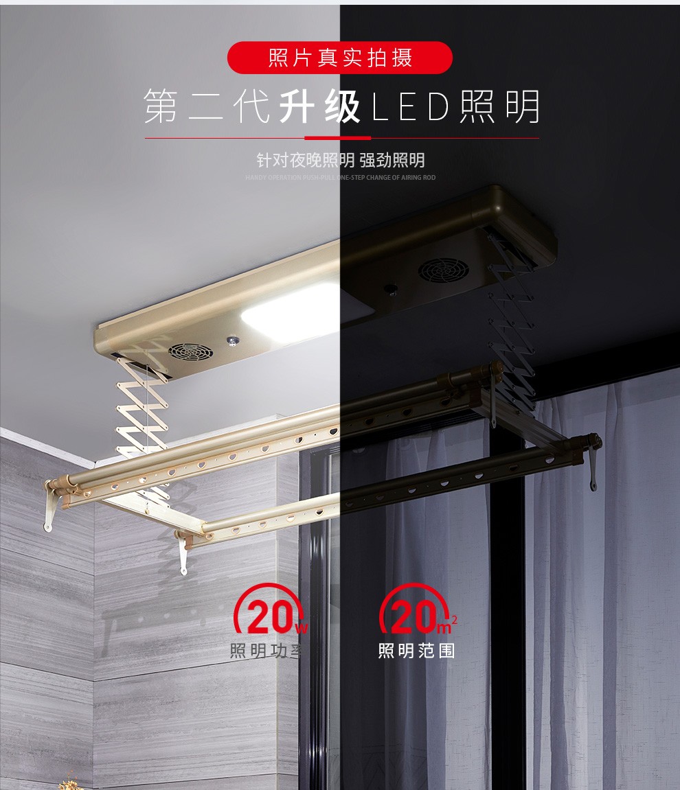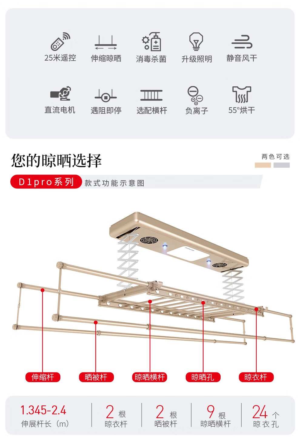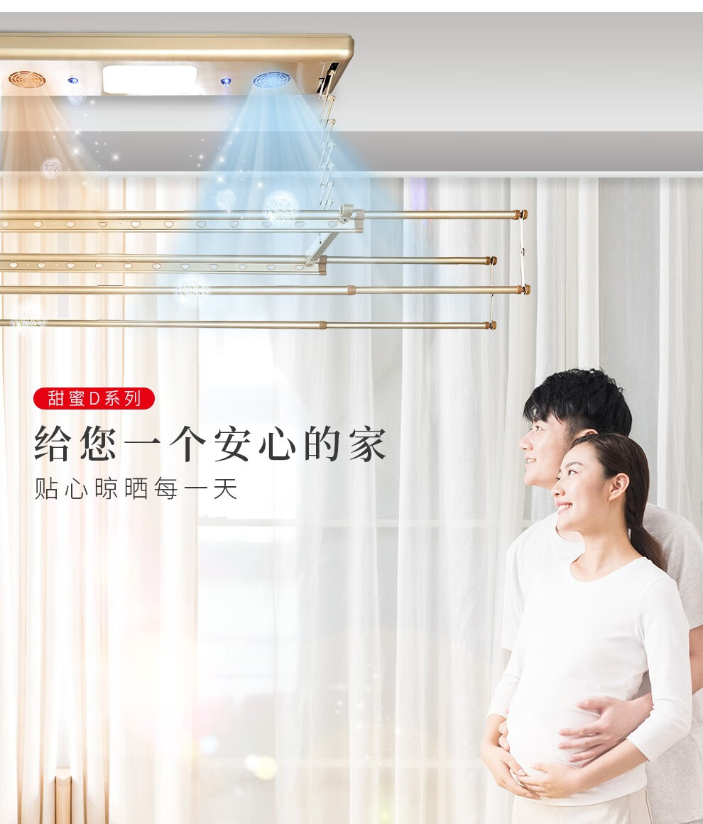 盼盼电动晾衣架智能自动升降晾衣杆 照明消毒风干阳台晒衣架