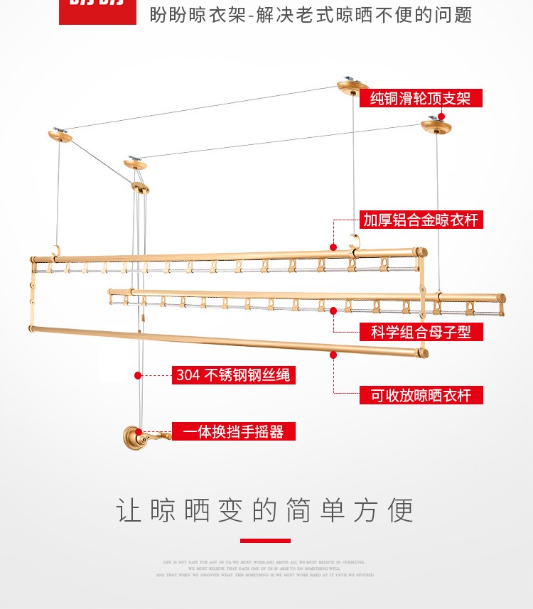 盼盼升降晾衣架 手摇晒衣架家用晒被子架SZ6