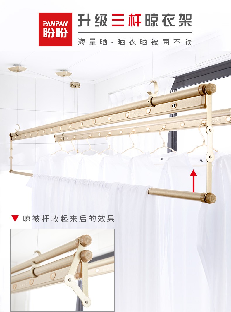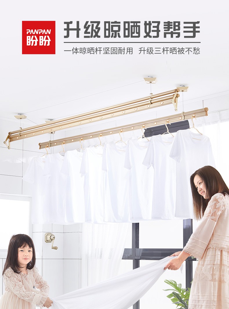 盼盼手摇晾衣架室内晒衣架 阳台升降晾衣杆 家用双杆三杆式凉衣架 手动挂衣架