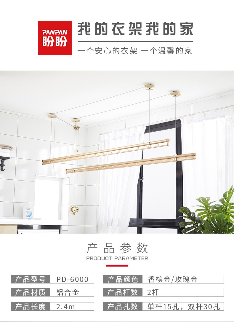 盼盼手摇晾衣架室内晒衣架 阳台升降晾衣杆