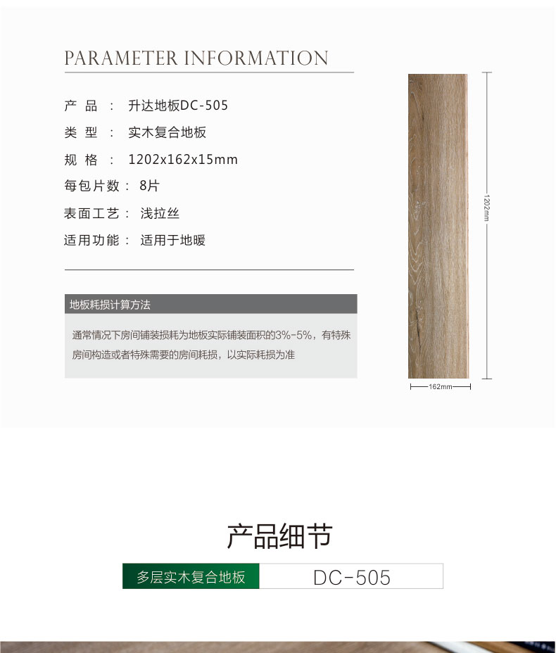 升达地板 多层实木复合地板环保地暖适用DC-505
