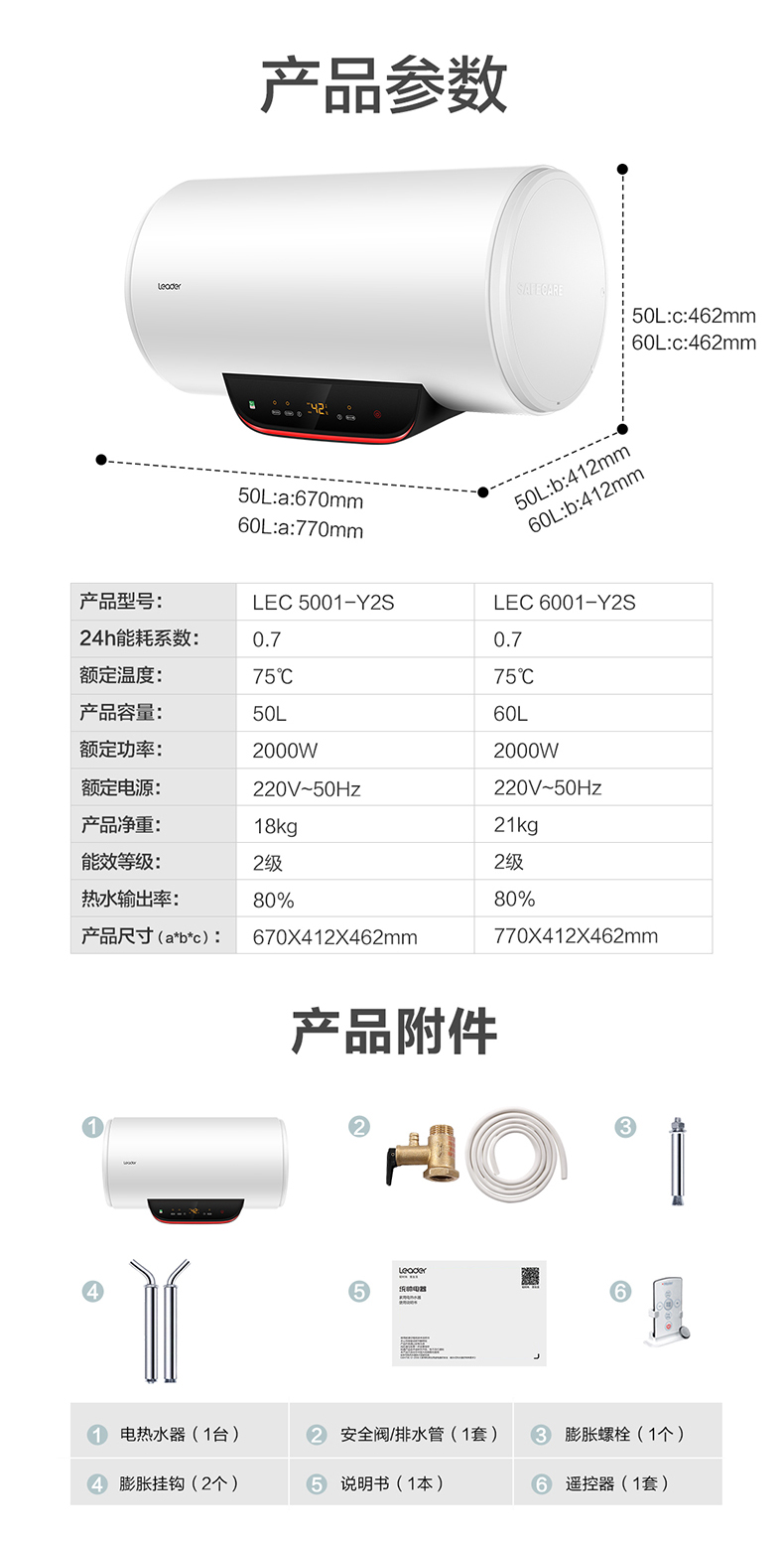 海尔 统帅Y2S热水器电家用速热小型卫生间洗澡