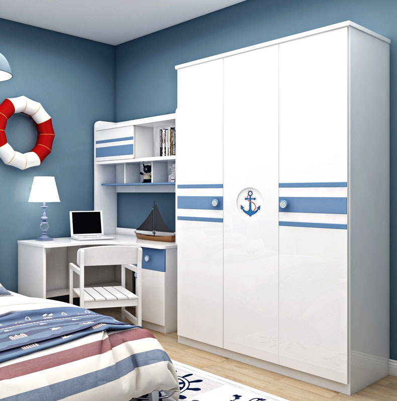 掌上明珠家居 床 海洋主题儿童卧室1.5米青少年床床头柜书桌衣柜 床+1床头柜+3门衣柜 1.5米