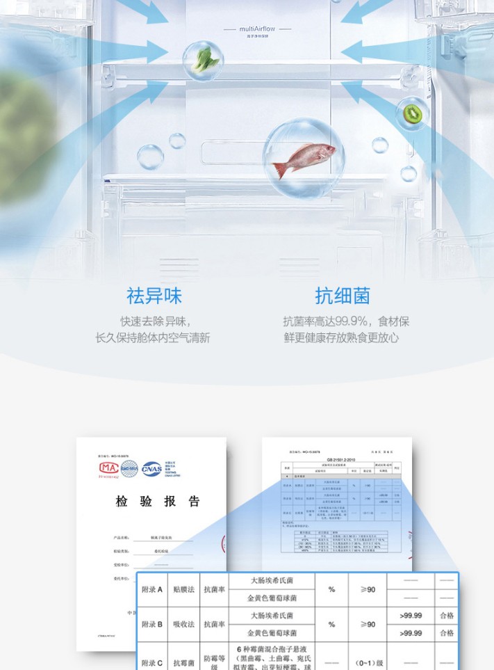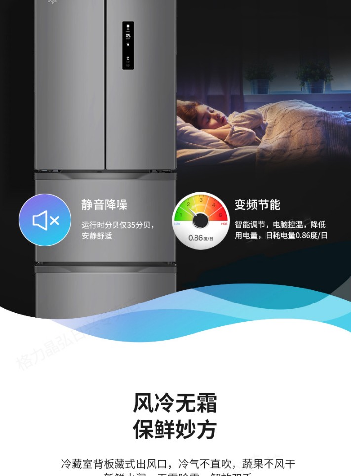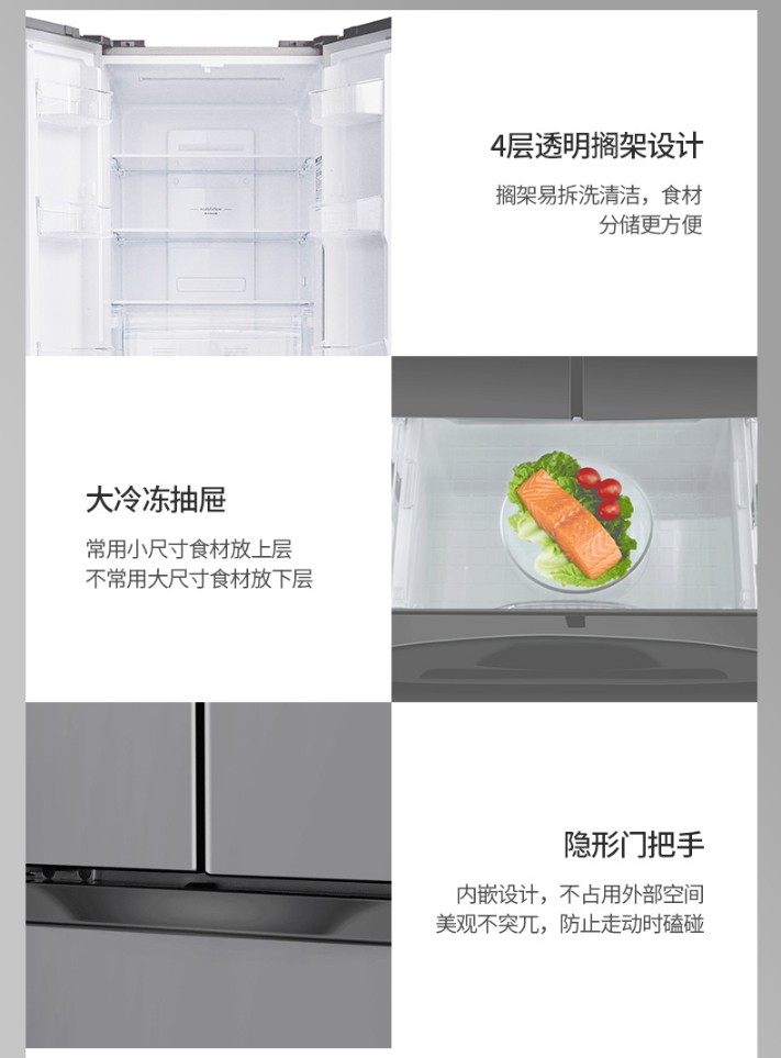 晶弘冰箱法式多门变频风冷WIFI智控离子净味300升静音省电 BCD-300WIPQC