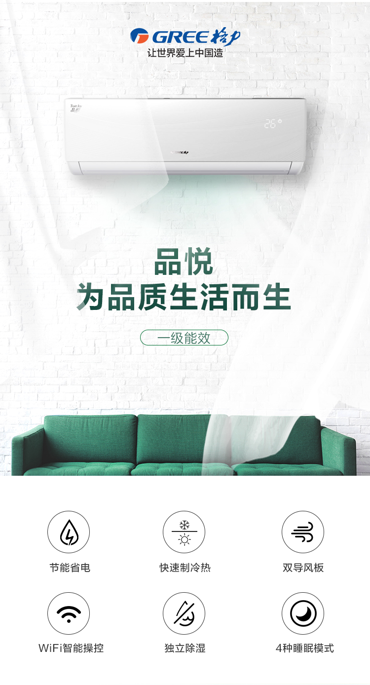 格力(GREE)正1.5匹 品悦一级能效 变频冷暖 智能 壁挂式卧室空调挂机 KFR-35GW/(35592)FNhAc-A1(WIFI)