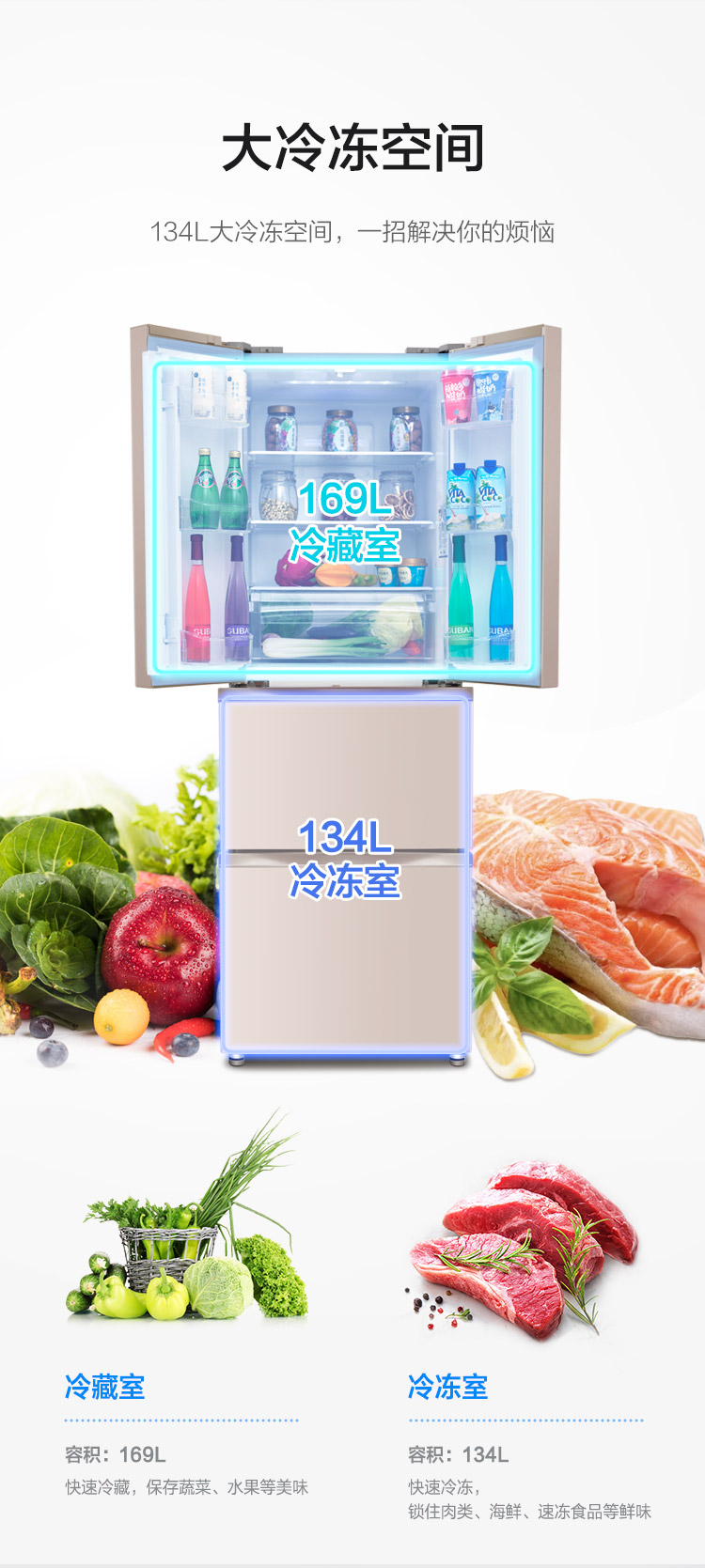 格力晶弘303升变频风冷多门冰箱BCD-303WIPQCL