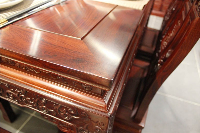 桌边的雕花大气优雅,每个花纹都是精雕细琢,机器结合手工,传统结合现代,完美融合。