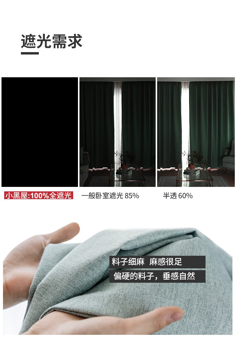 窗帘遮光北欧简约隔热防晒仿亚麻定制卧室客厅窗帘成品布料遮阳布