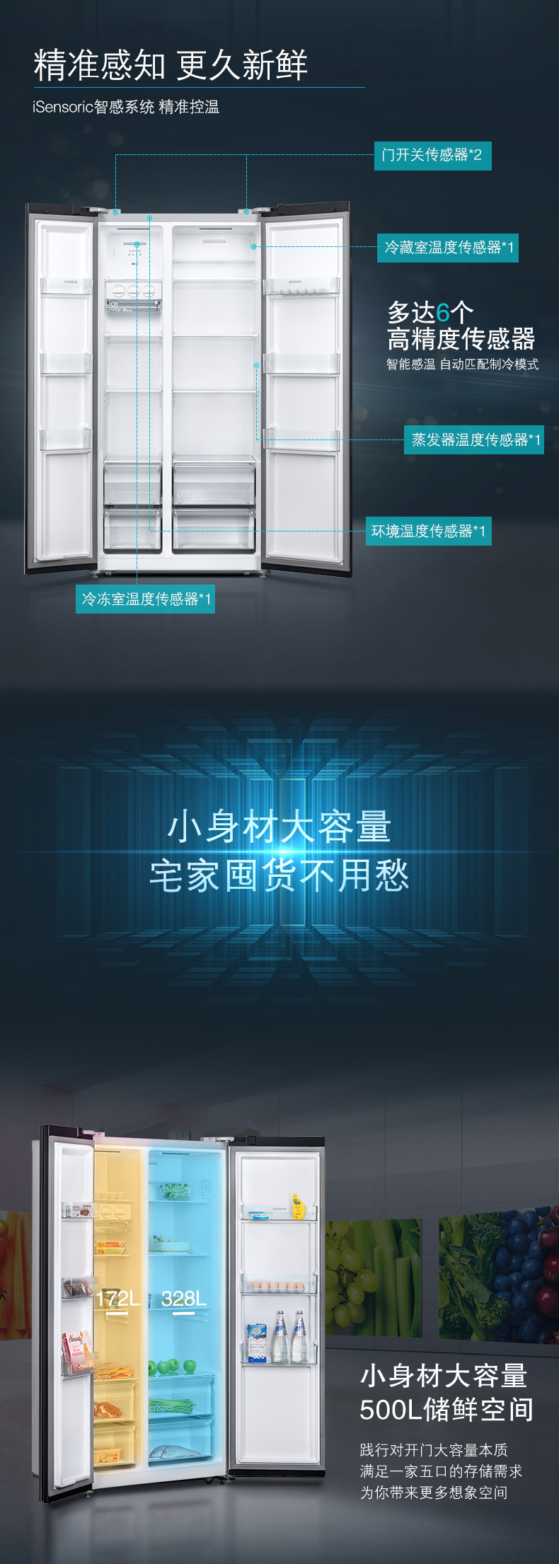 西门子 风冷无霜超薄嵌入 玻璃对开双开门冰箱