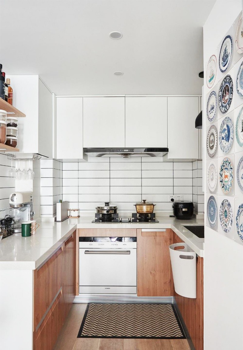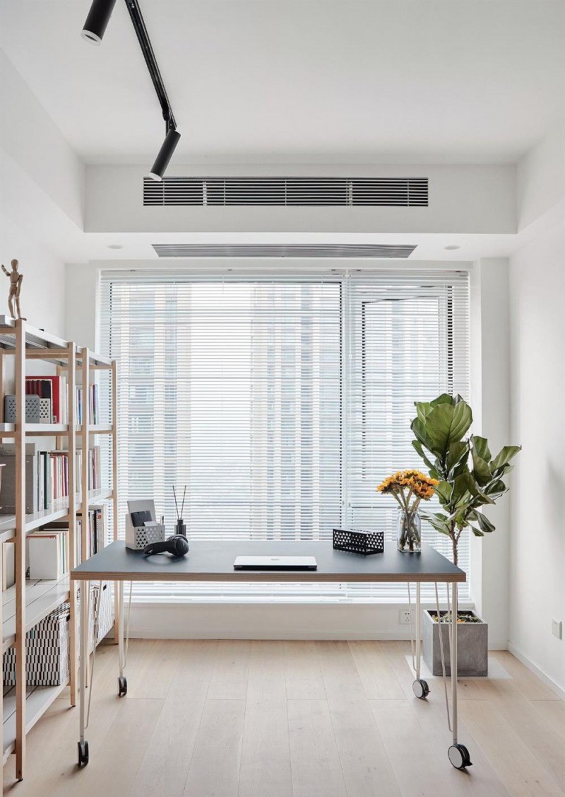 案例介绍:主要材料 | 科定涂装木皮板、宜家家居、博宁橱柜 原始户型是当下流行的三房两厅两卫的89方的户型,功能区域略显复杂,然而小夫妻两个人住起来并不舒服,脑海里比较喜欢开放通透的空间,略小的厨房,就算改成了开放式,要是塞下个冰箱,简直就是转不过身来。 然而:放弃一个明卫,一分为二,明窗部分让给次卧,不光面积上得到了提升,采光也大大增加;另外一部分转变成了冰箱位、烤箱位和餐边柜,宽度和厨房台面保持一致,顿然,厨房餐厅变大了。 开放了的书房区域,采光很好,释放了通往主卧的过道,整体格局变得更为舒适合理。 开放式厨房必须有个好的油烟机,19立方米/分钟的排风量是必须的。厨房地面也是铺 设了地板,对于日后的打理来说是件难事,软装配饰的时候,加了块垫子。 牺牲掉了一个卫生间,唯一的卫生间更换成了二分离式格局(浴缸淋浴房一间,坐便器台盆一间),浴缸淋浴房地面均下沉5公分,铺设专业卫生间地板,使得卫生间看起来也并非冰冷无力 。