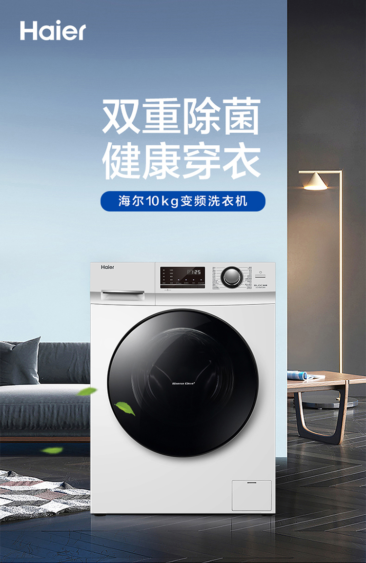 海尔(Haier) 滚筒洗衣机全自动 巴氏除菌香薰洗除异味 15分钟快洗 10KG变频电机 EG100B129W