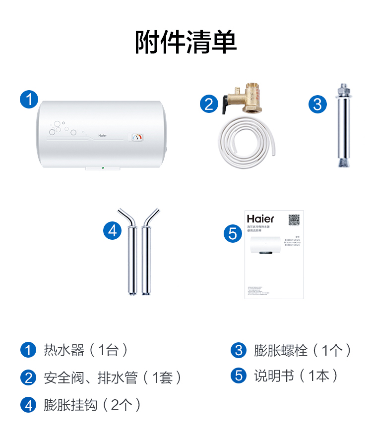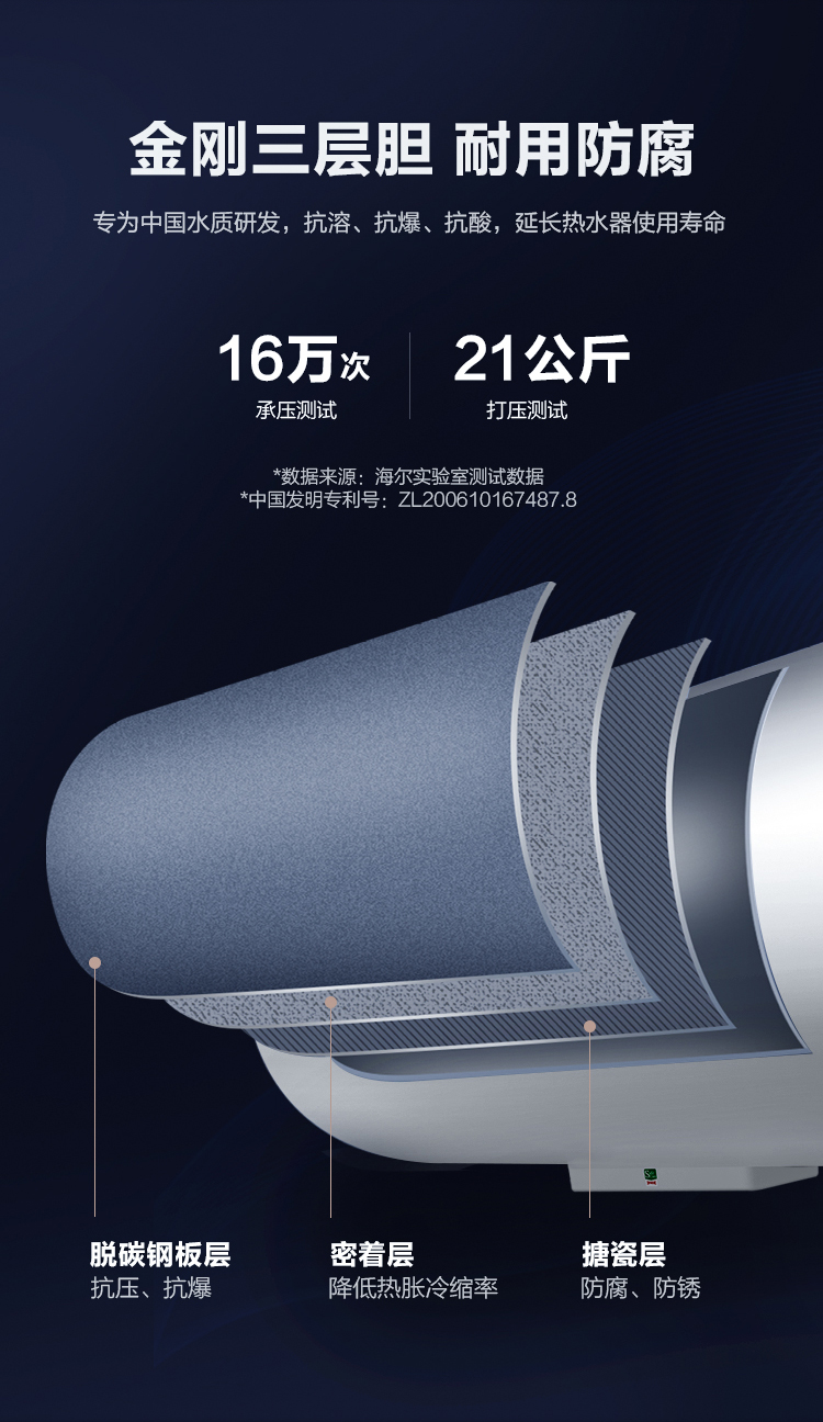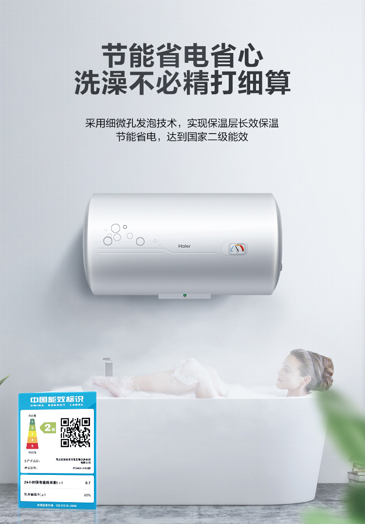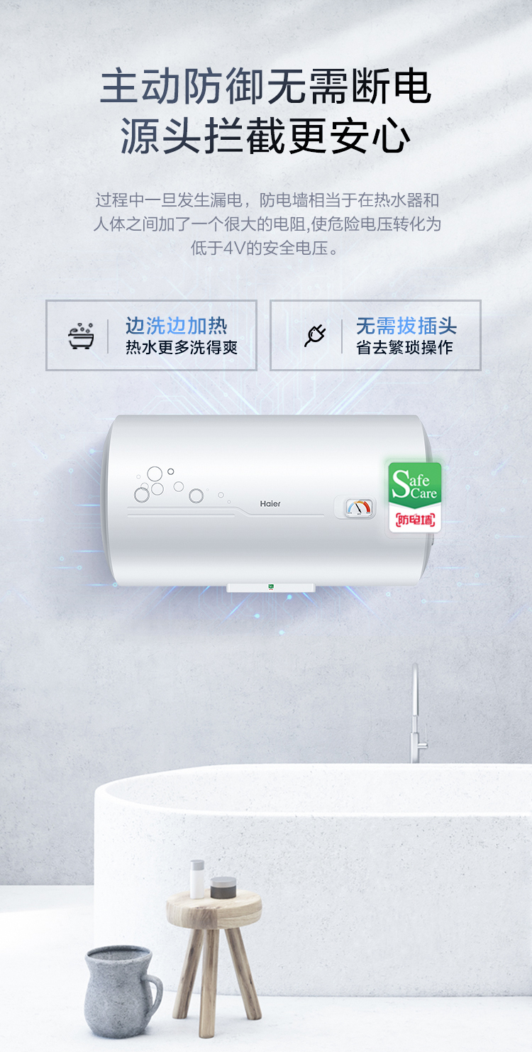 海尔(Haier)40升电热水器2200W大功率 专利防电墙 金刚三层胆 钼金加热管 6年包修 EC4001-B1