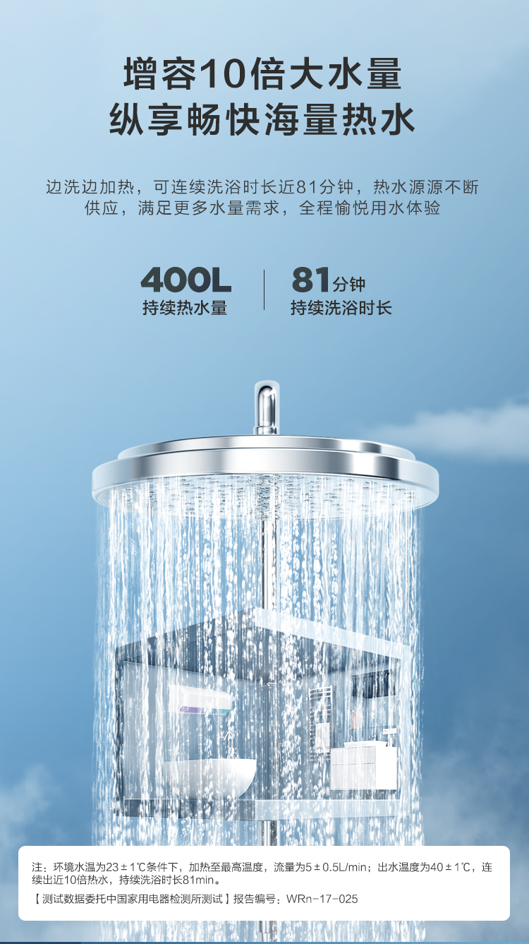 - 特色推荐:炫彩机身,速热增容,大屏数显,3D速热
