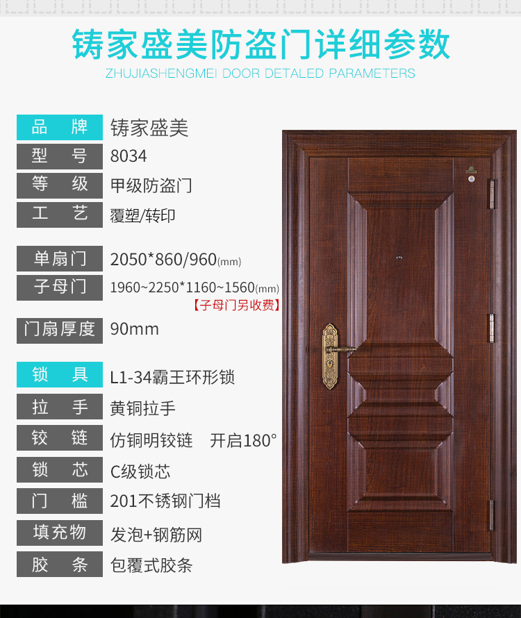 美心家美 铸家盛美甲级入户门防盗门安全智能门 子母门8034