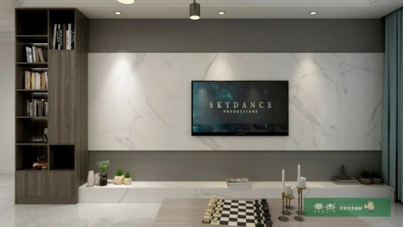 电视柜在背景墙一侧,用来收纳展示,让电视墙不单调,一通到顶起到客厅餐厅软分割的作用,美观实用。