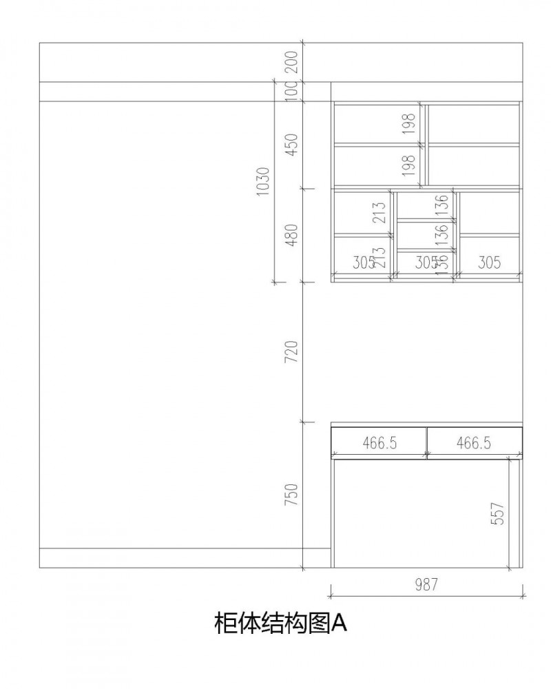 餐边柜与橱柜相结合,让其功能发挥的更加彻底,台面一体化使空间整体,立柜的开放格收纳电器,节约距离成本。