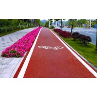 警示作用:红、绿、黄多彩路面,提高司机注意力,有效警示危险区域交通事故率。